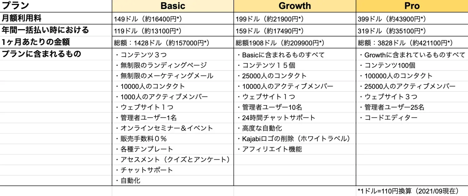 Kajabiの機能を存分に利用しようとするのであればGrowthプラン以上が必要